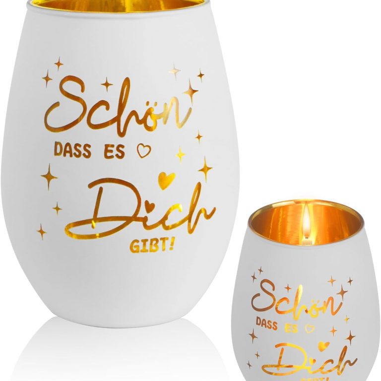 Dieses edle Windlicht aus Glas mit Gravur ‚Schön, dass es Dich gibt‘ ist ein liebevolles Geschenk für die beste Freundin. Als personalisiertes Teelichthalter-Geschenk sorgt es für warme Stimmung und erinnert an besondere Momente. Ideal zum Geburtstag, zu Festen oder einfach als kleine Aufmerksamkeit.